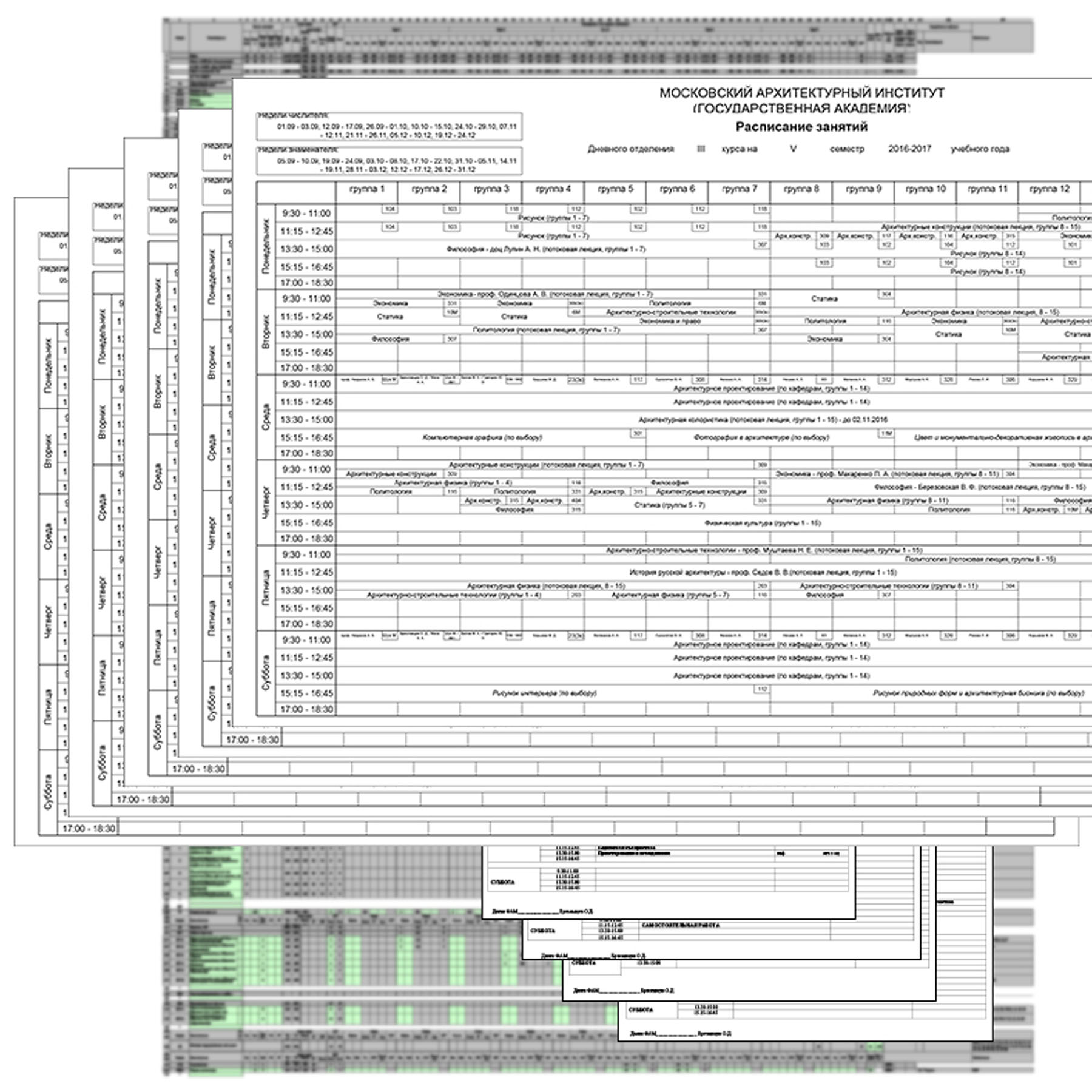 На текущий момент процесс создания расписания в большой степени ручной. Более того, репрезентация его также практически рисуется вручную. Структура для обращения действительно требует сложную экспертную модель, сочетая в себя множество зданий (как для администрации, так и для студентов), кратковременные мероприятия, варьирующееся время, отведенное для предметов по семестрам, варьирующийся подход к разделению групп по предметам и так далее. Более того сгенерированное таким образом расписание интуитивно не может быть использовано остальными участниками процесса. Таким образом, возник вопрос, можем ли мы без значительного нарушения учебного процесса упростить структуру, чтоб та стала анализируемой, а значит и оптимизируемой.